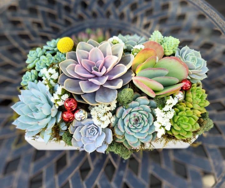$94.95 Add to cartThe container measures about 14 inches in diameter. It can either be a desert theme with cacti and aloes or succulent with echeverias arrangement. San Diego pick up or delivery only.