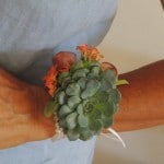 – 6 Bridesmaids Bouquets – Bright greens and orange blossfeldiana accents $38.00