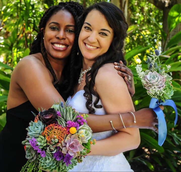 This Succulent Bouquet is created with a variety of purple succulents and zebra plants and can be accented with a variety of colors.