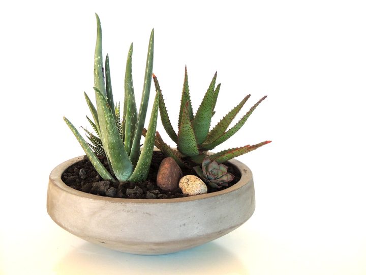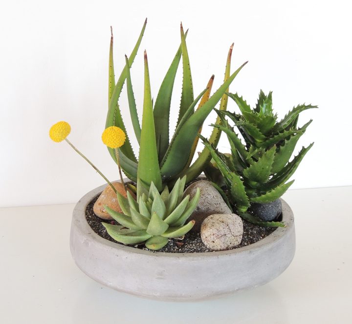 A Mixture of compatible aloes thrive in this large succulent planter.