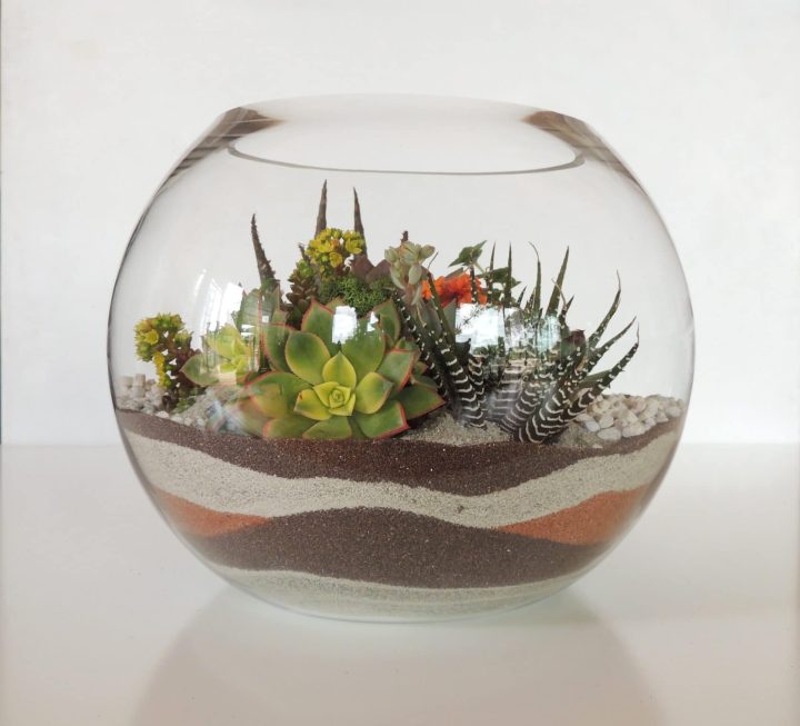 - 5 Succulent bubble terrarium with neutral colors for five round dining tables $500.00