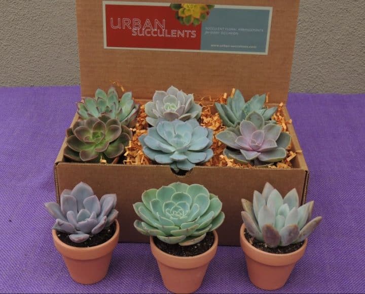 $64.95 Add to cart A festive mix of rooted seasonal succulents, including echeverias, crassulas or sempervivum make this arrangement in a 7" x 7" wood box a keeper. We accent it with colored moss and/or flowers.