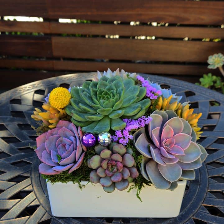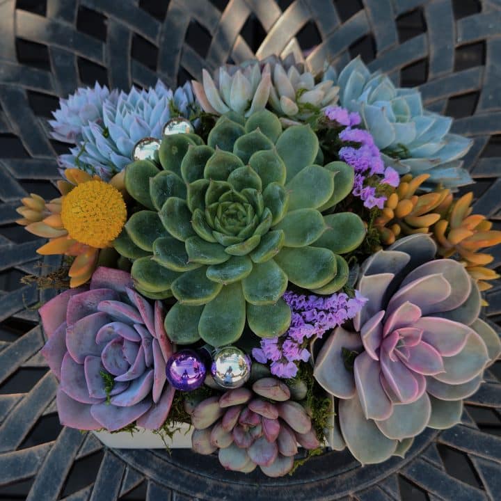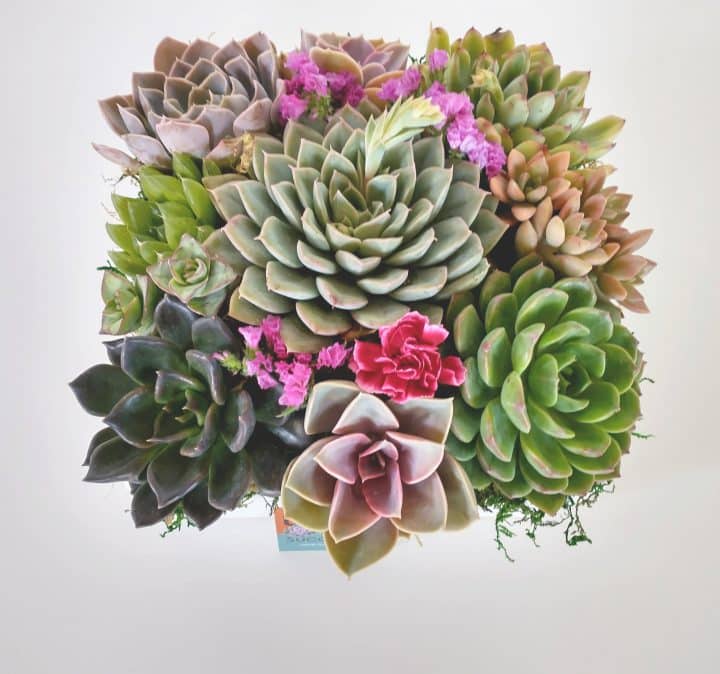 We hand select all of our succulents from small growers located in Southern California to create these one-of-a-kind plant arrangements.