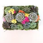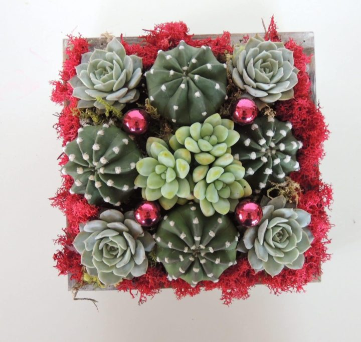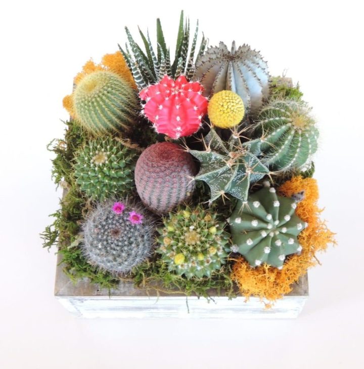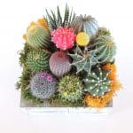 - 1 cactus and echeveria arrangement with green moss $65.00