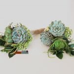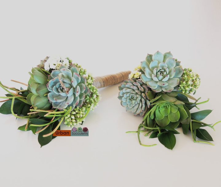 The bridal bouquet will be a combination of the first two pictures with minimal small white flowers. Succulents will be all shades of green including some burgundy and deep purple mauve.