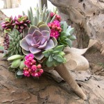 1 bridal bouquet with bougainbillea flowers incorporated among succulents and for accent a few shells and sticks on fire $165.00