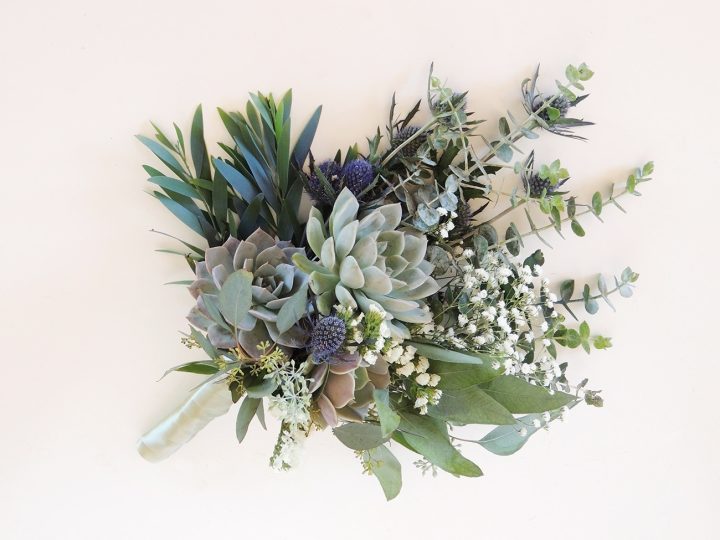 1 large bridal bouquet free form succulent bouquet with deep green and blue tones $185.00