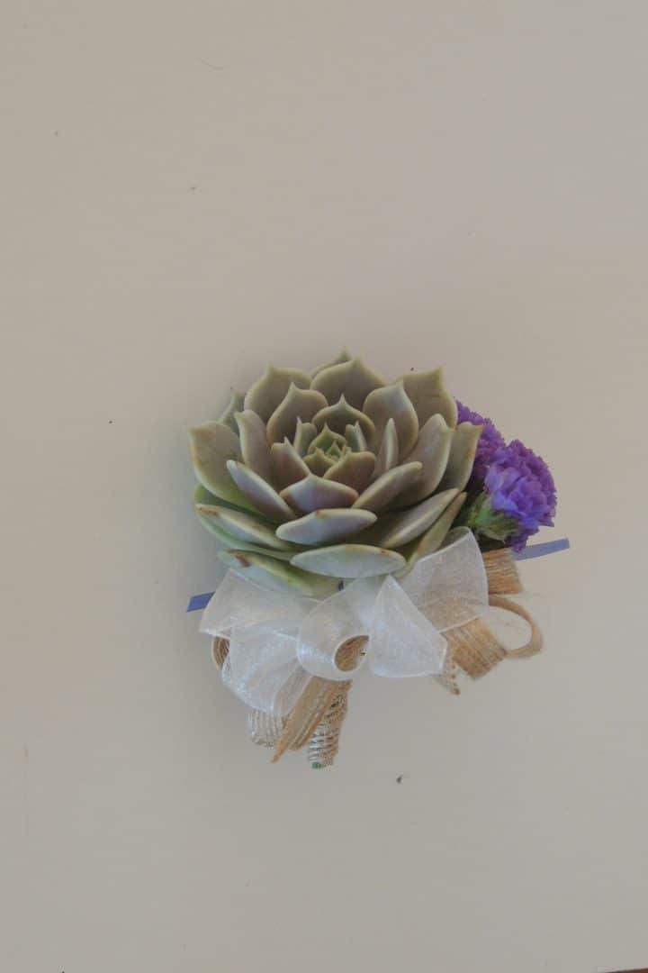 $34.00 Add to cart Succulent Boutonniere and hair comb, hair comb measures 3 inches. Choose your style and color theme. Color can be added with ribbon or flowers fillers. When ordering online please leave a note at checkout with picture number of your preference.