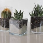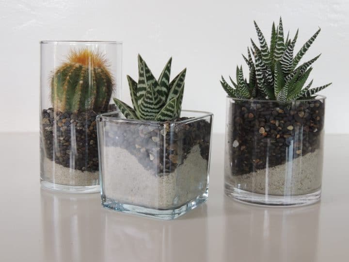 (cluster of 4 glass votives with moss and succulents)