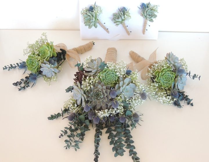 $145.00 Add to cart Mixed Succulent Bouquet. Created with one dozen succulents and 12 roses. The stems are wrapped in jute ribbon or white satin ribbon. Local (San Diego) pick up or delivery only.