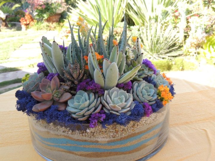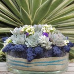 $160.00 Add to cart Mixed Succulent Bouquet. Created with two dozen succulents in a careful selection of colors ranging form minty blue to bright green and mauve to deep purple to lavender colors; accentuated with white mums. The stems are wrapped in jute ribbon, twine or white satin ribbon.