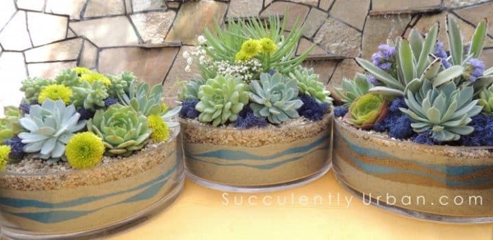- Brides maids bouquets may be created with 3 succulents form the above selection swatted in babies breath.
