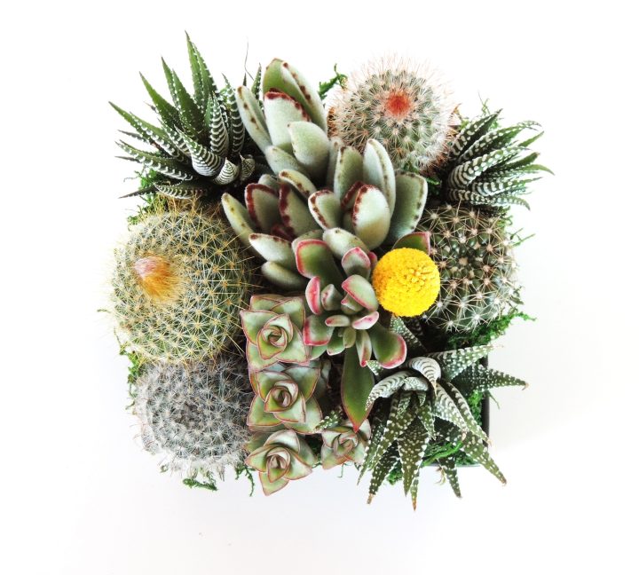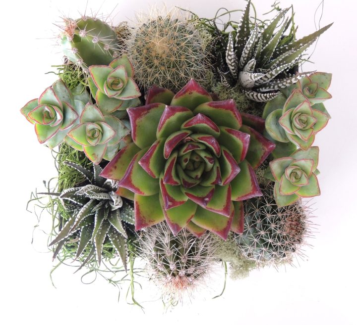 Succulent arrangement composed of haworthias, kalonchoe tomentosa or panda plant, cactusa and crassulas is better suited for longer living in an indoor environment.