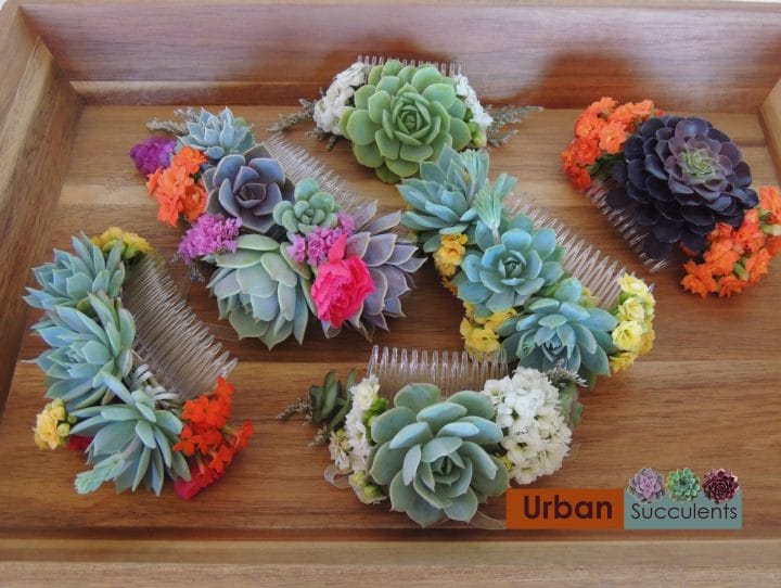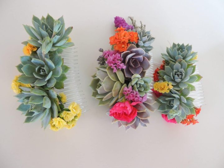 It may be created with blue, purple or green succulents and pink or white blooms or any other colors.