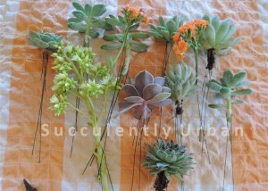 I start by selecting the succulents that my client likes according to texture, color and size.